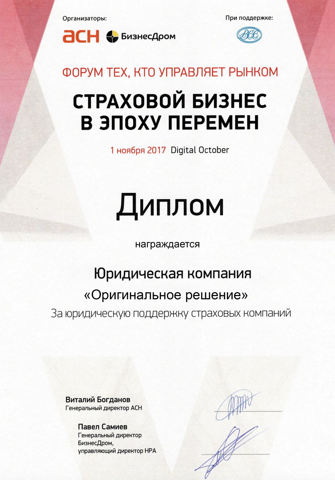 Диплом "Форум Страховой бизнес"