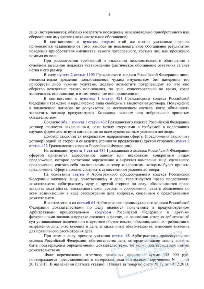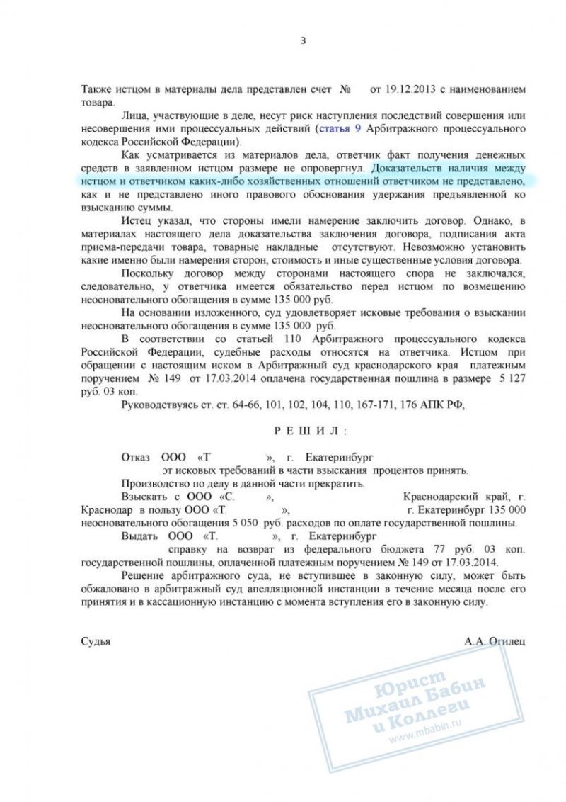 - Факт перечисления денег. Представленным платёжным поручением № 675 от 20.12.2013 подтверждено, что истец перечислил ответчику 135 000 руб. с назначением платежа: «Оплата за товар по счёту № 32 от 19.12.2013».