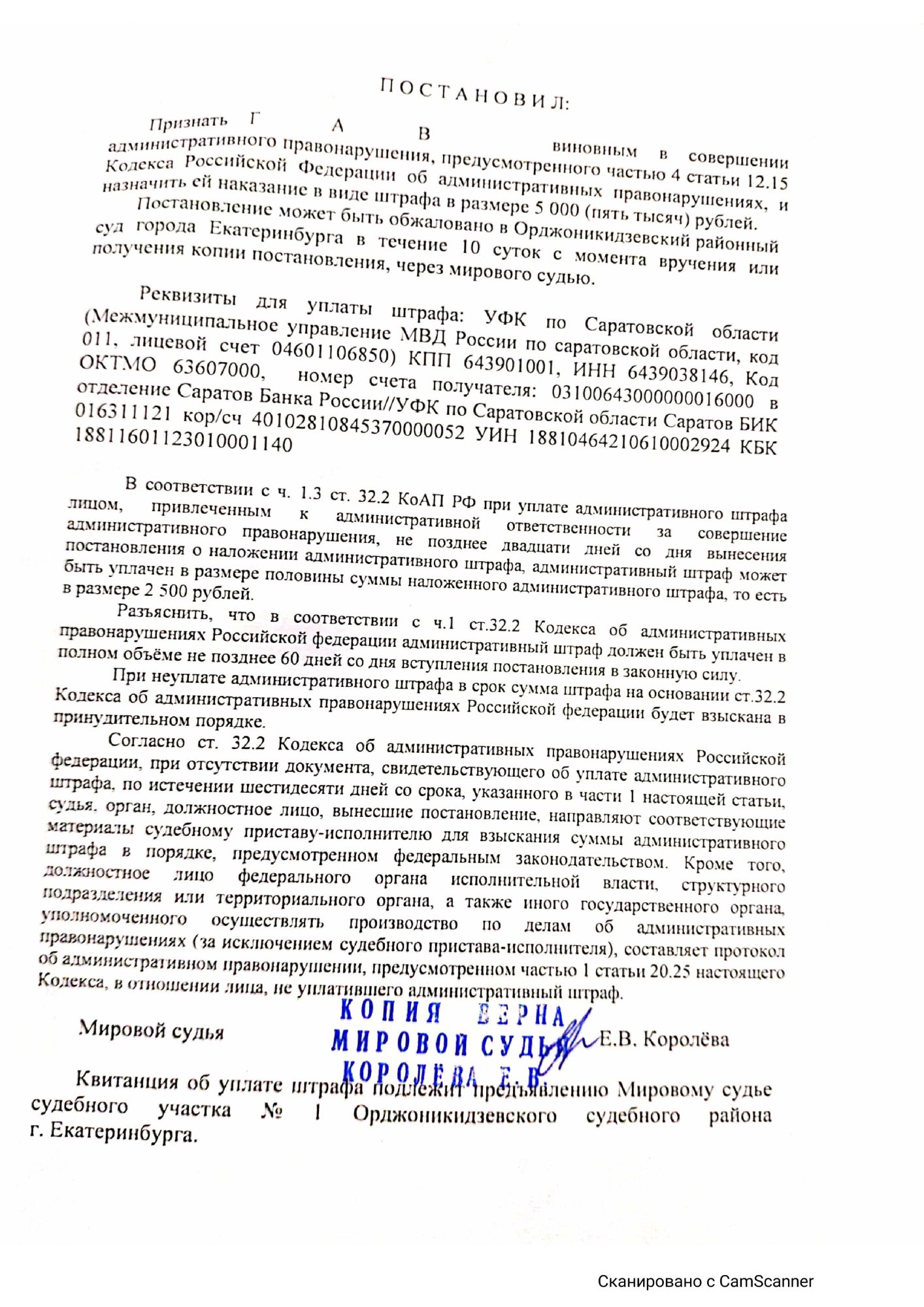 Рассмотрев дело об административном правонарушении, предусмотренном ч.4 ст.12.15 Кодекса РФ об административных нарушениях был назначен штраф 5000 рублей. Права сохранены.