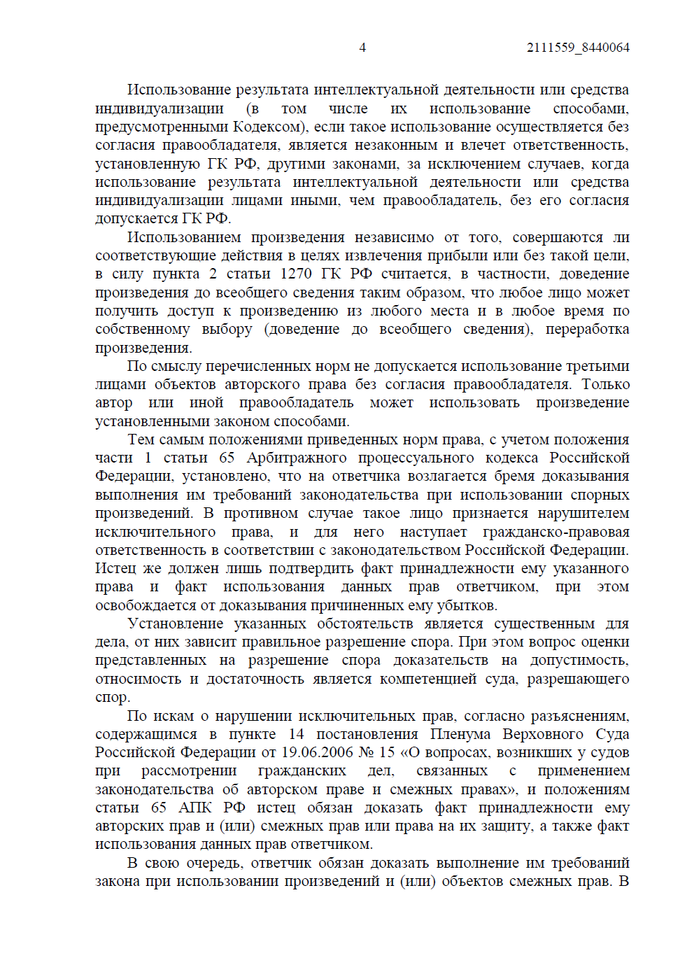 • Ответчик настаивал, что публикация носила информационный характер (цитирование). Однако мы указали суду на императивное требование ст. 1274 ГК РФ: любое свободное использование возможно только с обязательным указанием имени автора и источника заимствования, чего сделано не было.