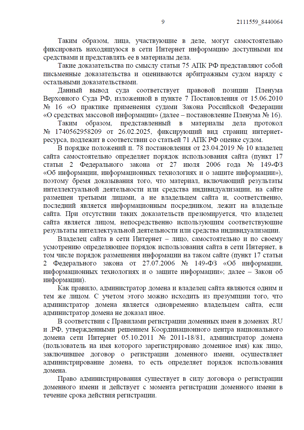 • Факт публикации был зафиксирован не только скриншотами, но и с помощью автоматизированной системы «Цифровое Око», а также нотариального протокола осмотра доказательств.
